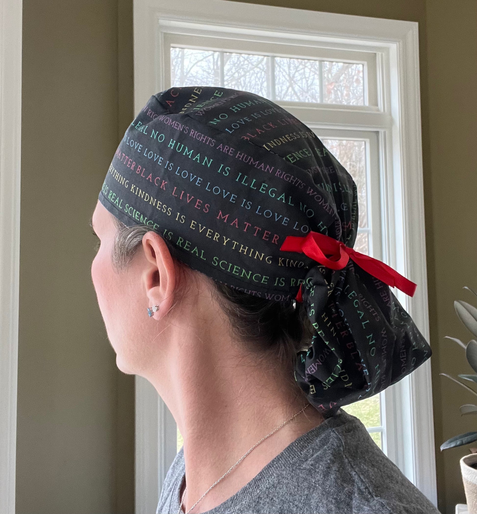 SCIENCE is REAL no human illegal blm love is love rights ponytail scrub cap womens